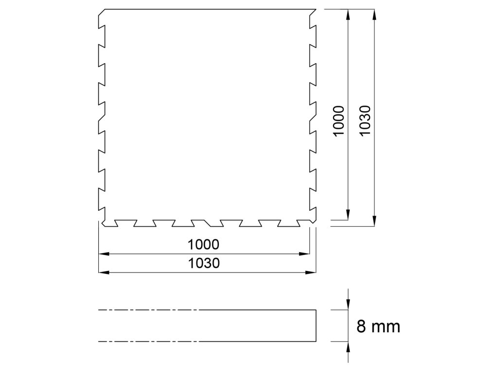 Podložka je vyrobena ze směsi pryžového granulátu SBR a polyuretanového pojiva, čímž je zajištěna její dlouhá životnost. Podložka se skládá z několika dílů, které se jednoduše spojí pomocí puzzle zámků (viz technický nákres v galerii). V případě potřeby lze rozměr podložky změnšit či provést výřez, stačí použít odlamovací nůž, případně jakýkoliv jiný ostrý nůž.
