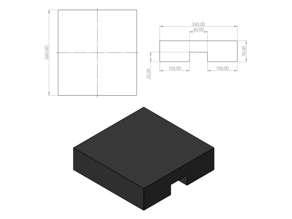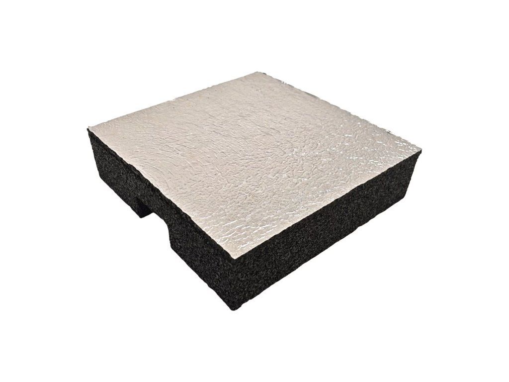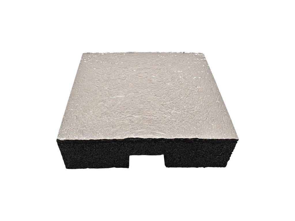 Gumová podložka s ALU fólií pod konstrukci fotovoltaické elektrárny na střechu s hydroizolací z PVC fólie FLOMA UniPad ALU - 26 x 26 x 7 cm