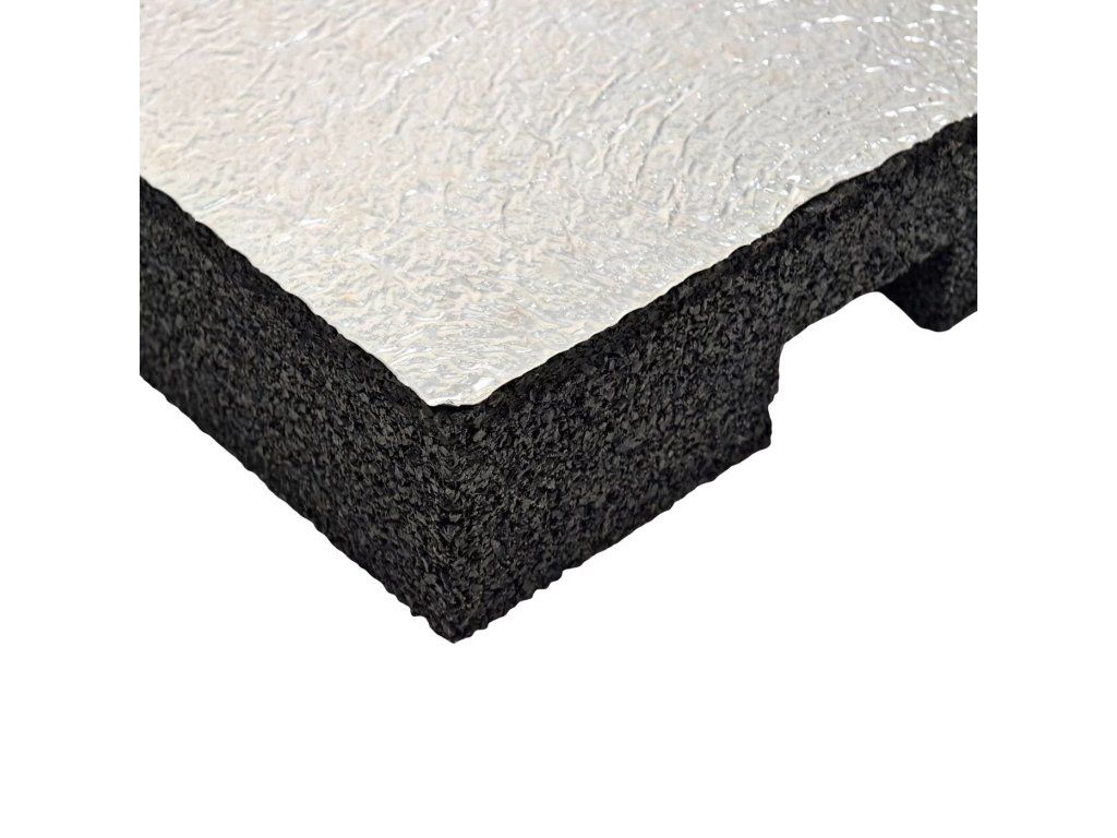 Vrsta ALU fólie na jedné straně podložky zabraňuje možné migraci částic z gumového granulátu, která by v dlouhodobém horizontu mohla poškodit (degradovat) hydroizolaci střechy, pokud je použita pro hydroizolaci PVC fólie.