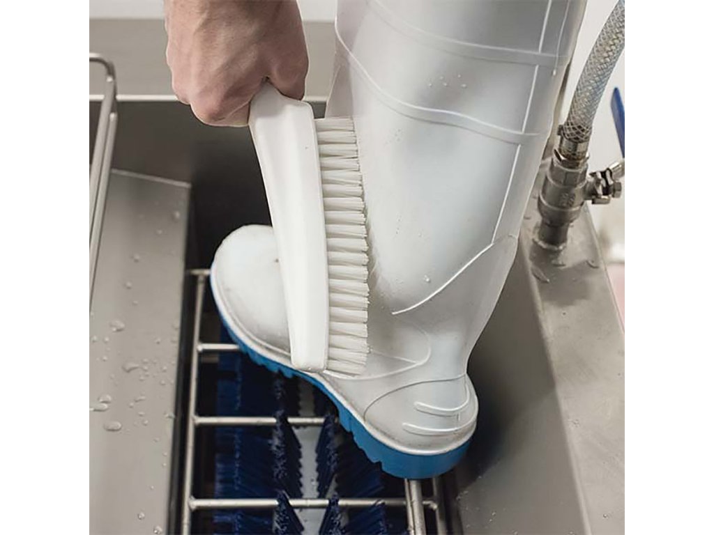 Pro očištění vysokých bot, nebo holínek využijete integrovaný ruční kartáč, který je vybaven regulovatelným přívodem vody. Pro ještě lepší a efektivnější očistu lze přidat dezinfekční prostředky. Nádoba na saponát je umístěna na snadno dostupném místě a hadici pro přívod lze individuálně nastavit pro optimalizaci množství čistícího prostředku.