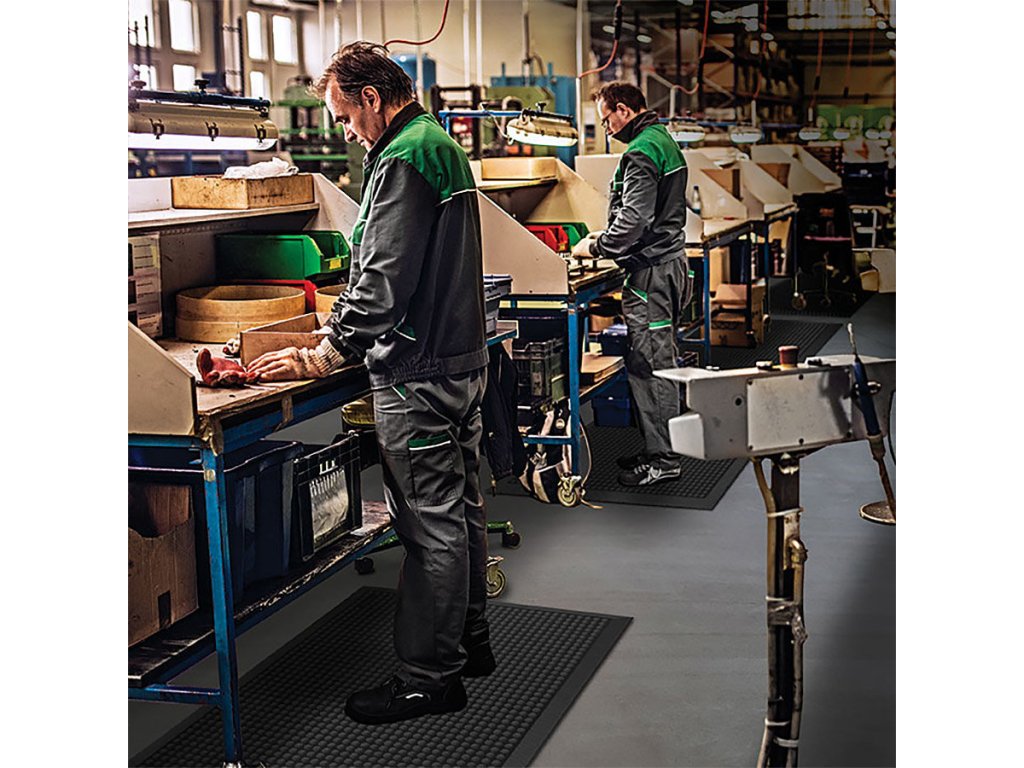 Gumová protiúnavová průmyslová rohož Skystep využívá síly vzduchu. Vzduchové kapsy na rubu rohože slouží jako přísavky bránící posouvání rohože. Zachycený vzduch zároveň poskytuje konstrukci rohože oporu. Ta proto může být méně robustní, lehčí a přesto poskytovat vysoký komfort díky pružnosti gumy. Tyto 13 mm silné, samostatné gumové rohože mají ergonomický bublinový povrch s výbornými protiúnavovými parametry, umožňující volný pohyb všemi směry.