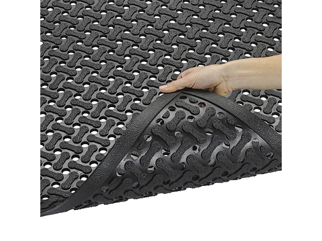 Rohož je určena do mokrého prostředí. Drenážní otvory umožňují odvětrávání, protékání tekutin a propadávání nečistot, povrch tak zůstává suchý a čistý. Pravidelné čištění saponátem a tlakovou vodou prodlužuje jejich životnost. Tvrdá gumová směs garantuje dlouhou životnost rohoží.