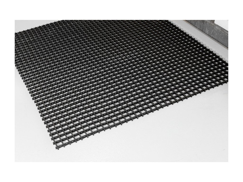Univerzální průmyslová rohož odolná vůči olejům, ohni i vodě. Rohož je možné použít z obou stran, čímž se prodlužuje její životnost. Mřížkování zamezuje uklouznutí a zachycuje odřezky a třísky. Do jednotlivých mezer je možné vložit vyplňující kostku a rohož tak v určitých místech více zafixovat.