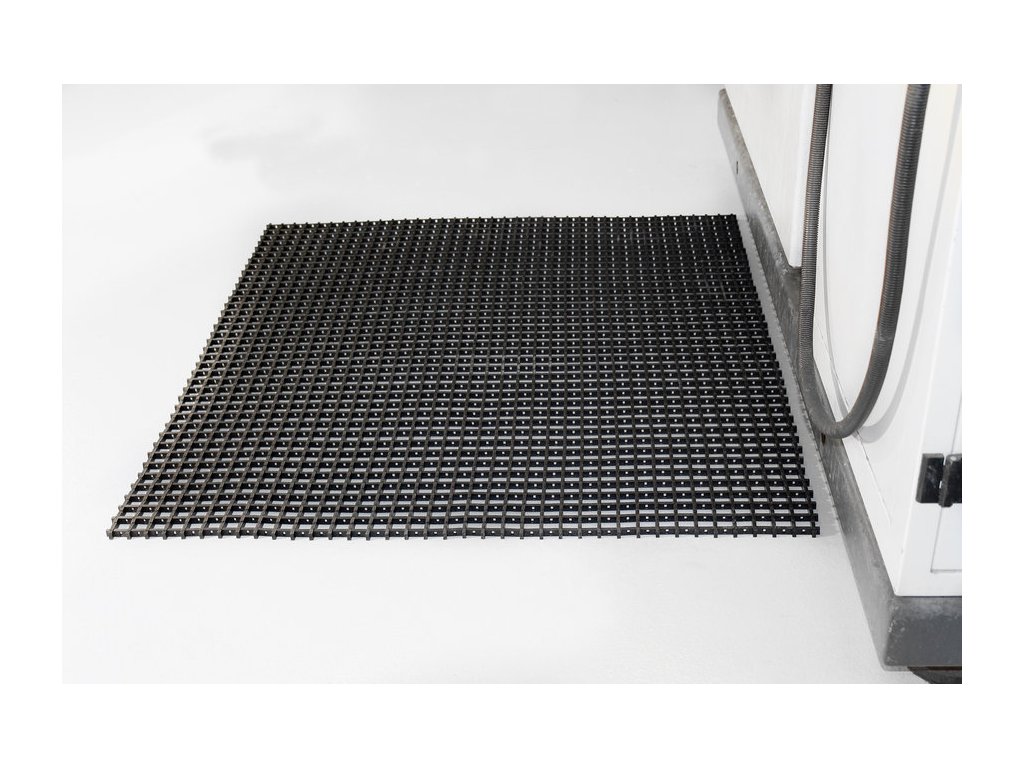 Univerzální průmyslová rohož odolná vůči olejům, ohni i vodě. Rohož je možné použít z obou stran, čímž se prodlužuje její životnost. Mřížkování zamezuje uklouznutí a zachycuje odřezky a třísky. Do jednotlivých mezer je možné vložit vyplňující kostku a rohož tak v určitých místech více zafixovat.