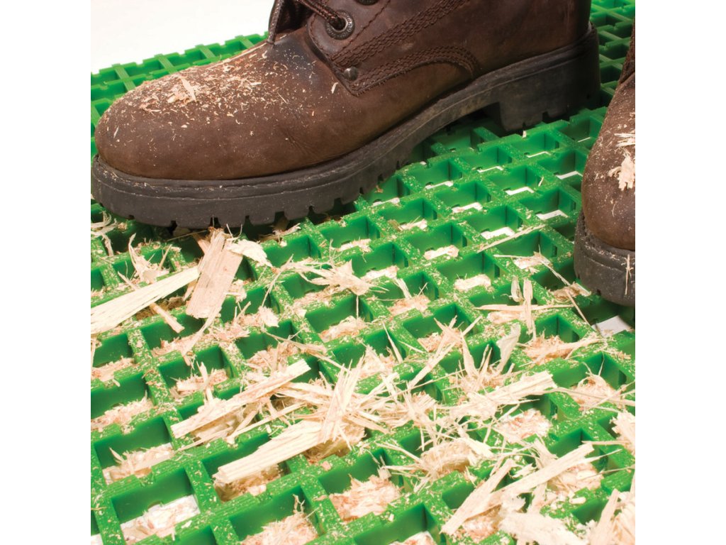 Univerzální průmyslová rohož odolná vůči olejům, ohni i vodě. Rohož je možné použít z obou stran, čímž se prodlužuje její životnost. Mřížkování zamezuje uklouznutí a zachycuje odřezky a třísky. Do jednotlivých mezer je možné vložit vyplňující kostku a rohož tak v určitých místech více zafixovat.