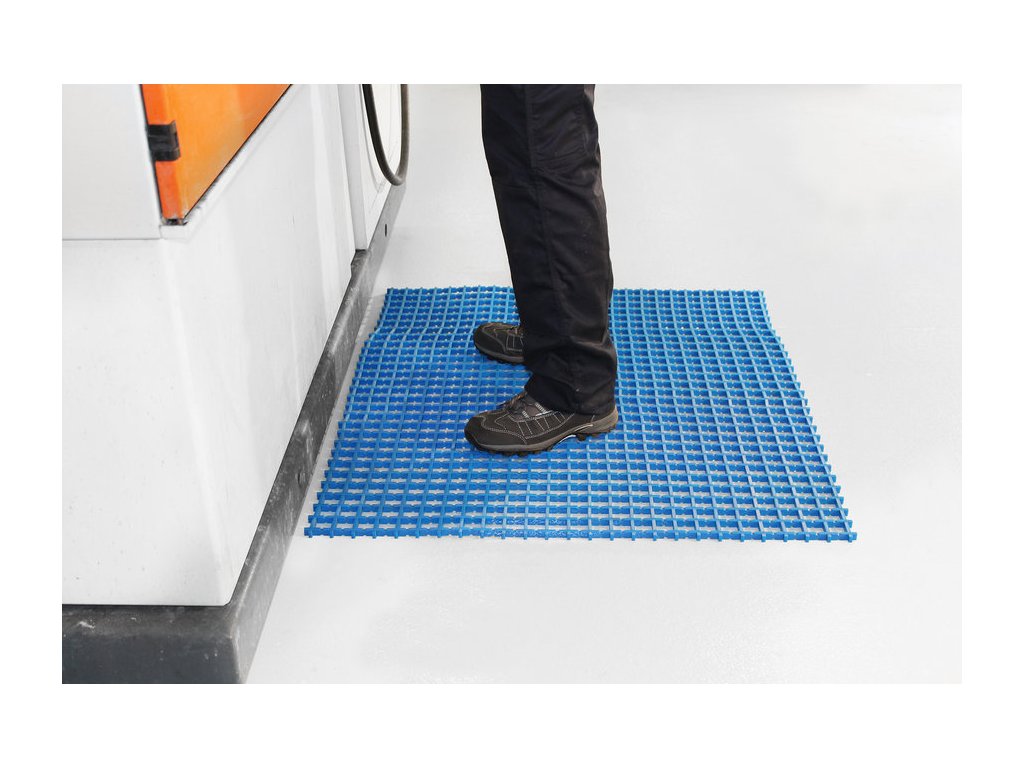 Univerzální průmyslová rohož odolná vůči olejům, ohni i vodě. Rohož je možné použít z obou stran, čímž se prodlužuje její životnost. Mřížkování zamezuje uklouznutí a zachycuje odřezky a třísky. Do jednotlivých mezer je možné vložit vyplňující kostku a rohož tak v určitých místech více zafixovat.