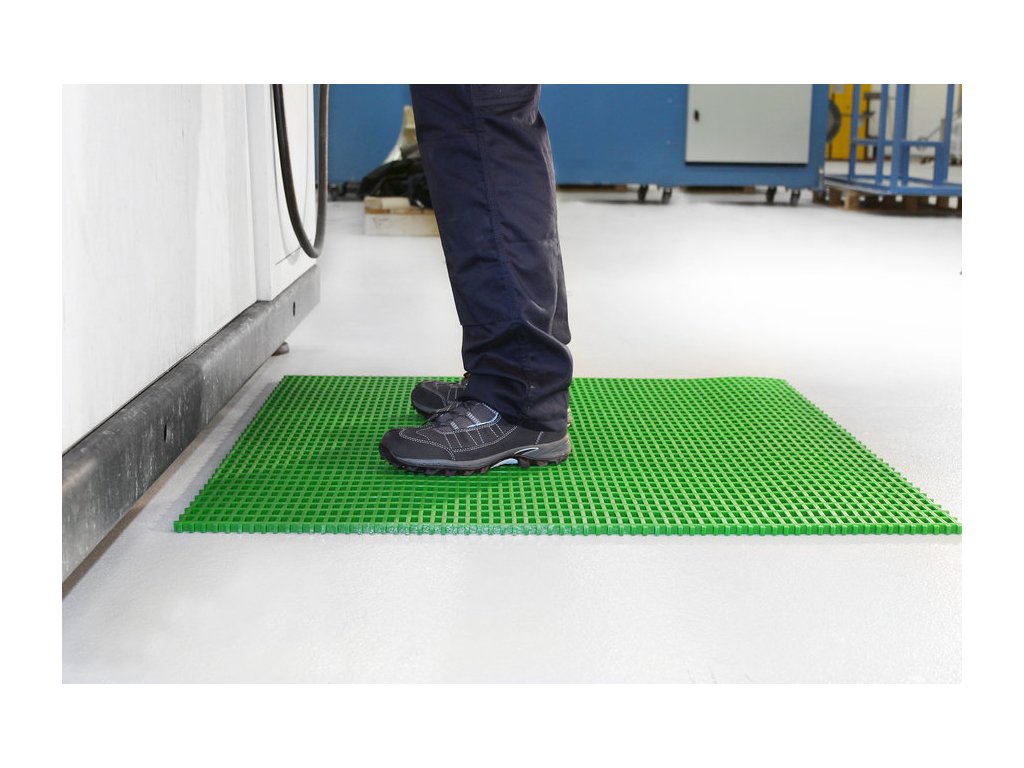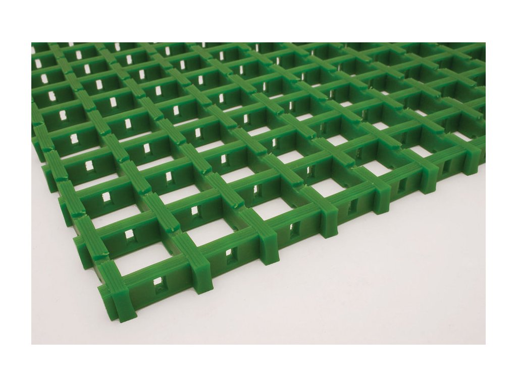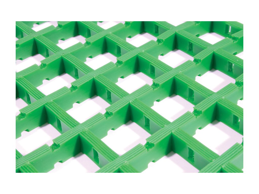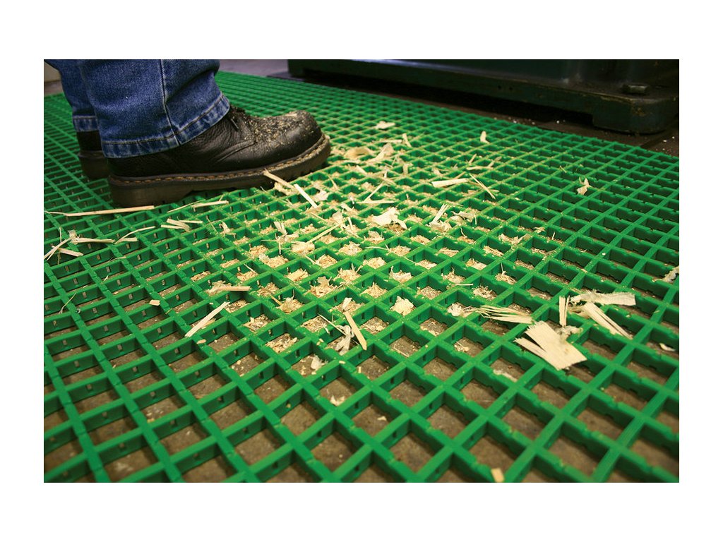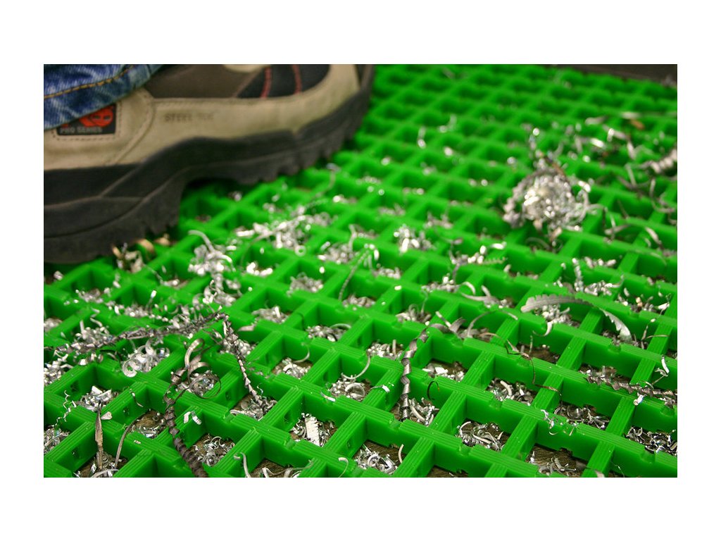 Univerzální průmyslová rohož odolná vůči olejům, ohni i vodě. Rohož je možné použít z obou stran, čímž se prodlužuje její životnost. Mřížkování zamezuje uklouznutí a zachycuje odřezky a třísky. Do jednotlivých mezer je možné vložit vyplňující kostku a rohož tak v určitých místech více zafixovat.