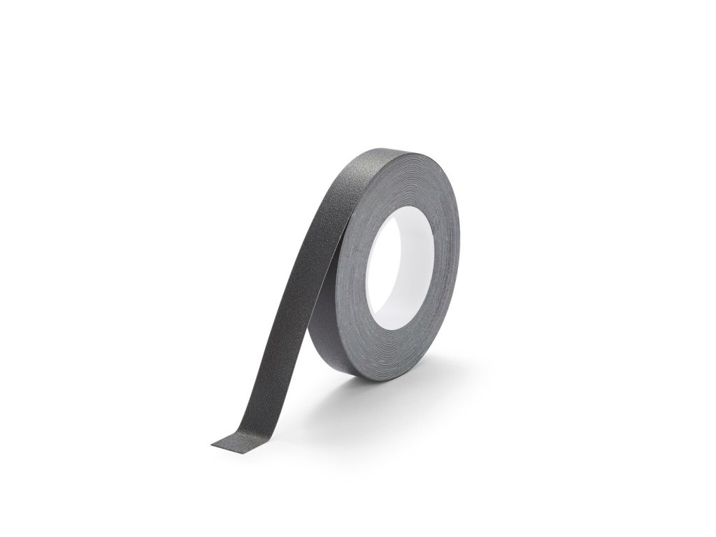 Černá plastová voděodolná protiskluzová páska FLOMA Resilient Standard - 18,3 m x 2,5 cm a tloušťka 1 mm