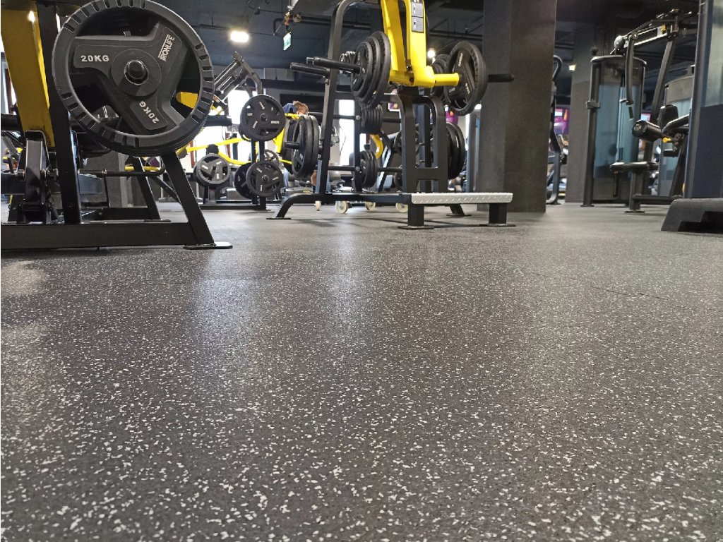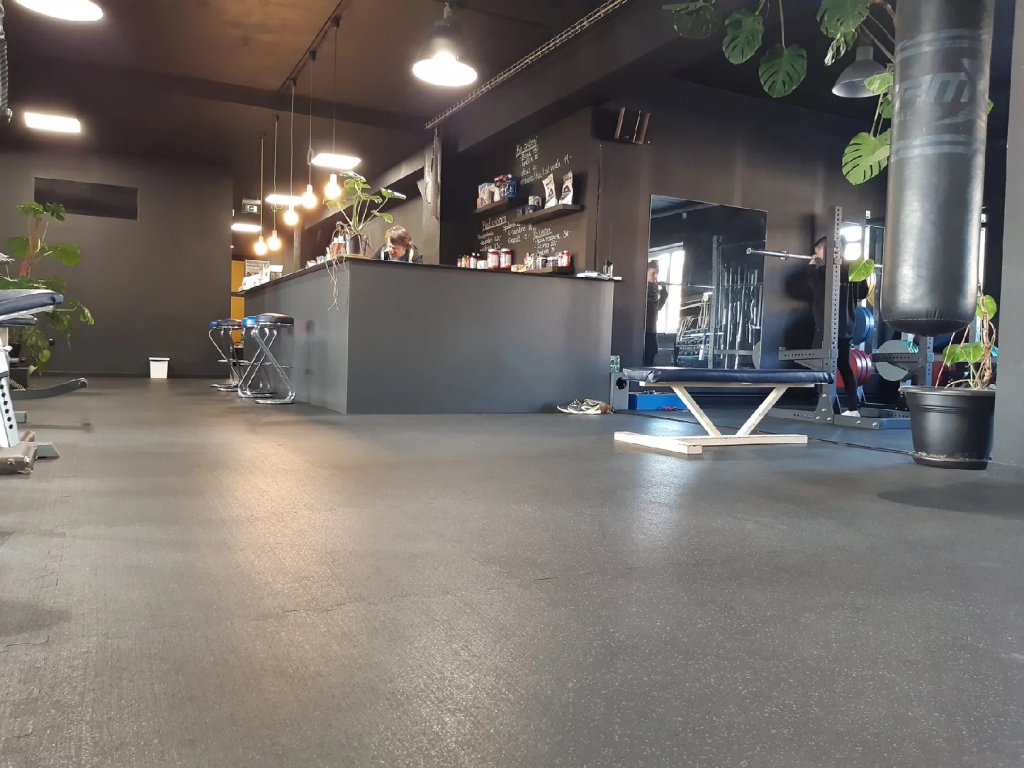 Gumová dlažba (modulová podlaha) FLOMA FitFlo SF1050 se systémem puzzle zámků je ideální podlahou do domácích posiloven a fitness (profesionální fitness centra obvykle volí výšku 1,6 cm). Velice dobře absorbuje nárazy, pády při cvičení, zmírňují dopady činek a cvičícího nářadí. Nespornou výhodou materiálu je také šetrnost ke kloubnímu aparátu cvičence. Tato gumová podlahovina se dá použít jako celoplošná podlaha do domacích fitness, jako pochůzné plochy v posilovnách, jako podložky pod cvičící stroje, odkládací plochy pro činky a další.