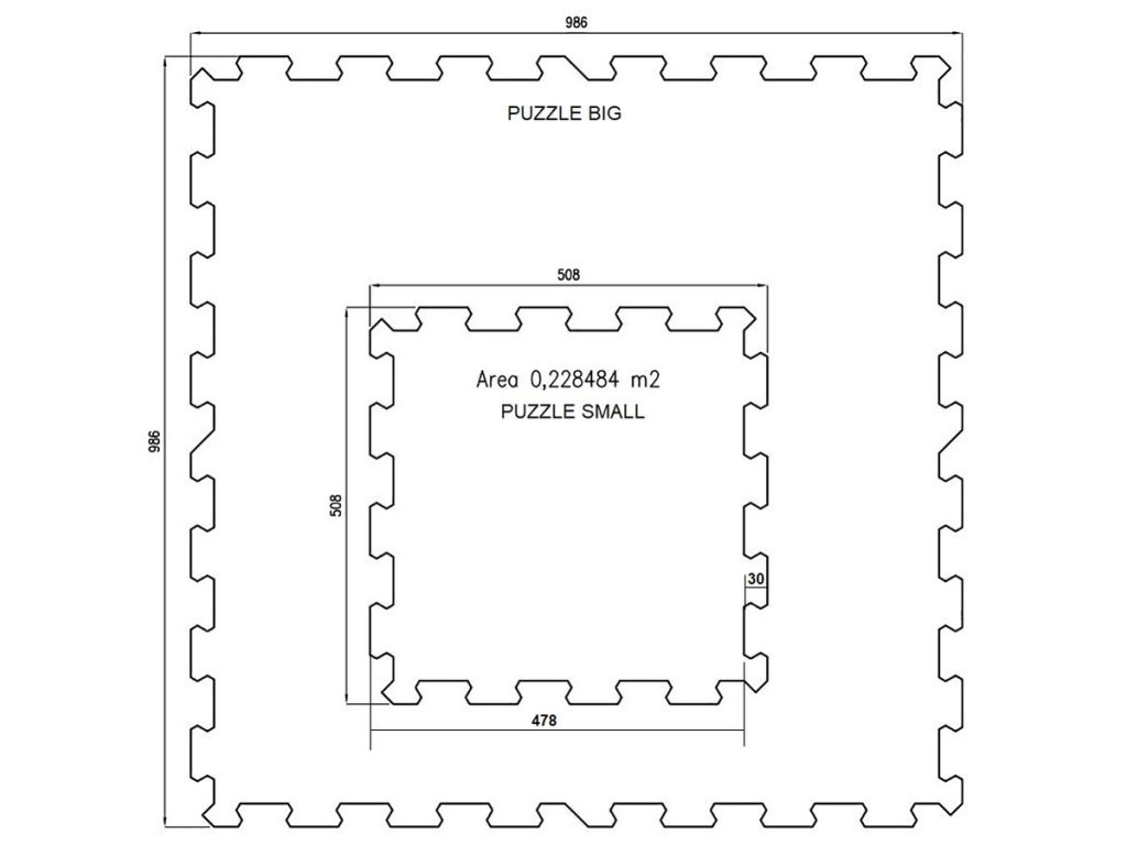 Pro neceloplošné podlahy obvykle využijete tyto typy puzzle podložek: 4x ROH, dle rozměru čtverce či obdelníku Xx OKRAJ a pro vyplnění středu plochy Xx STŘED. Pokud po sestavení podlahy potřebujete upravit finální rozměr, dlaždice lze seříznout odlamovacím nožíkem (pozor - oříznuté puzzle dílce již nebudou kompatibilní s ostatními ze všech stran, pokud se mělo časem rozebrat a znovu skládat). Pro rovný řez použijte vodící lištu.