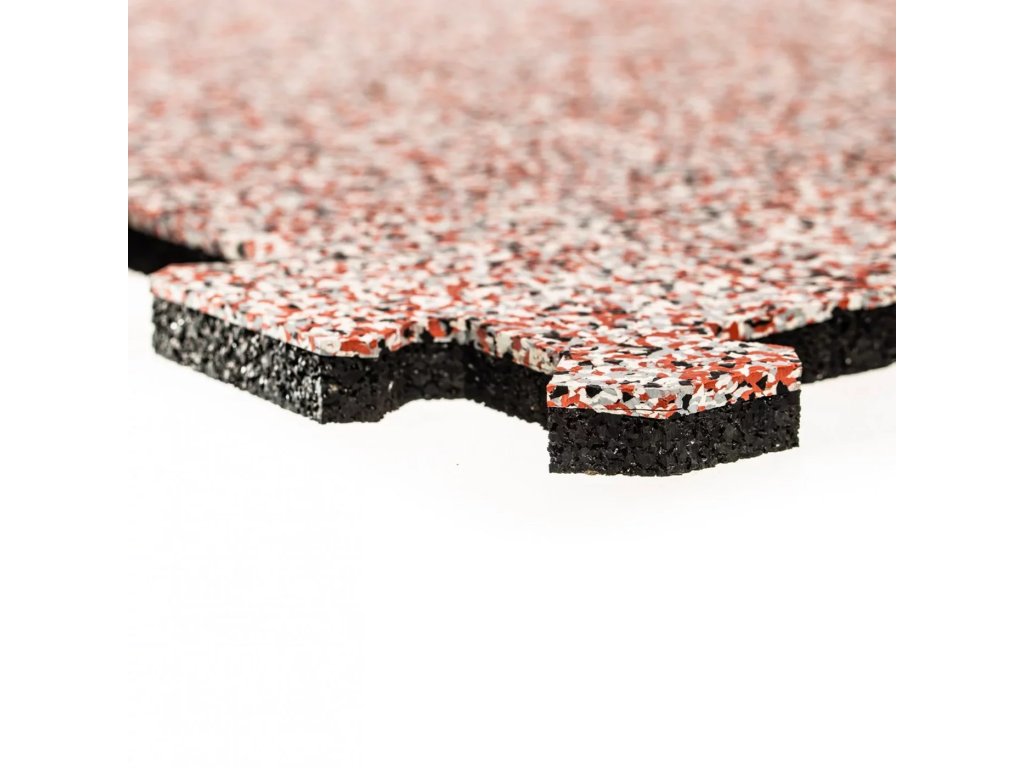 - výška: 2,5 cm (0,3 cm horní vrstvy je EPDM MIX bílá + šedá + černá + 30 % červená a 2,2 cm SBR černé spodní vrstvy)
