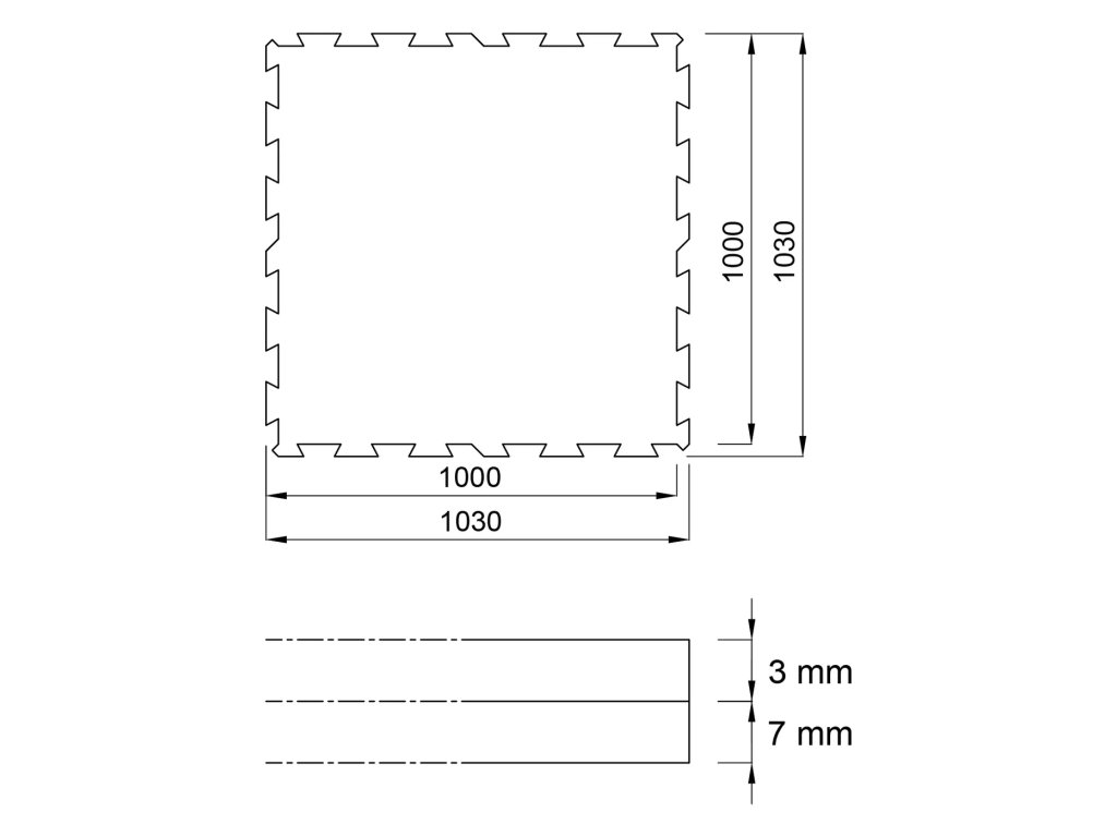 - výška: 1 cm (0,3 cm horní vrstvy je EPDM a SBR MIX bílá + šedá + černá a 0,7 cm SBR černé spodní vrstvy)