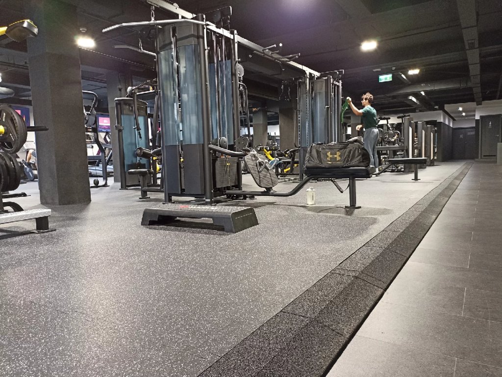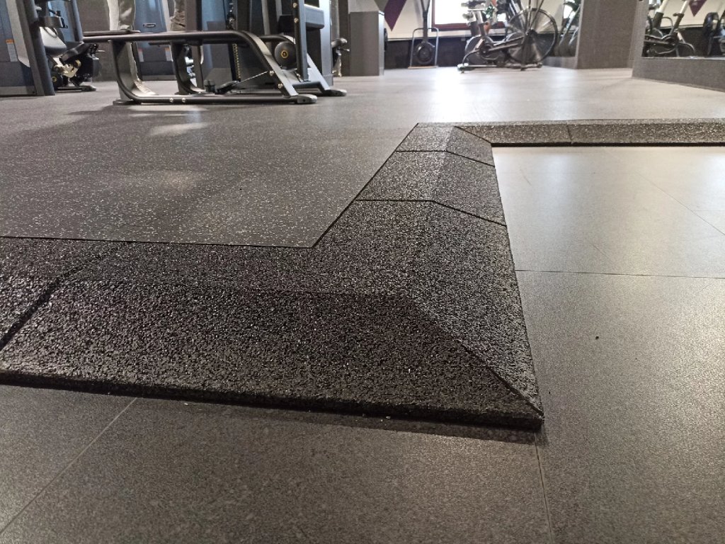 Modulární gumová dlažba FLOMA FitFlo SF1050 s příměsí 10% EPDM šedého granulátu v provedení STANDARD velice dobře absorbují nárazy, pády při cvičení, zmírňují dopady činek a cvičícího nářadí. Nespornou výhodou materiálu je také šetrnost ke kloubnímu aparátu cvičence. Tyto tvrzené pryžové rohože se dají použít jako pochůzné plochy posiloven, desky pod cvičící stroje, desky pod činky a další.
