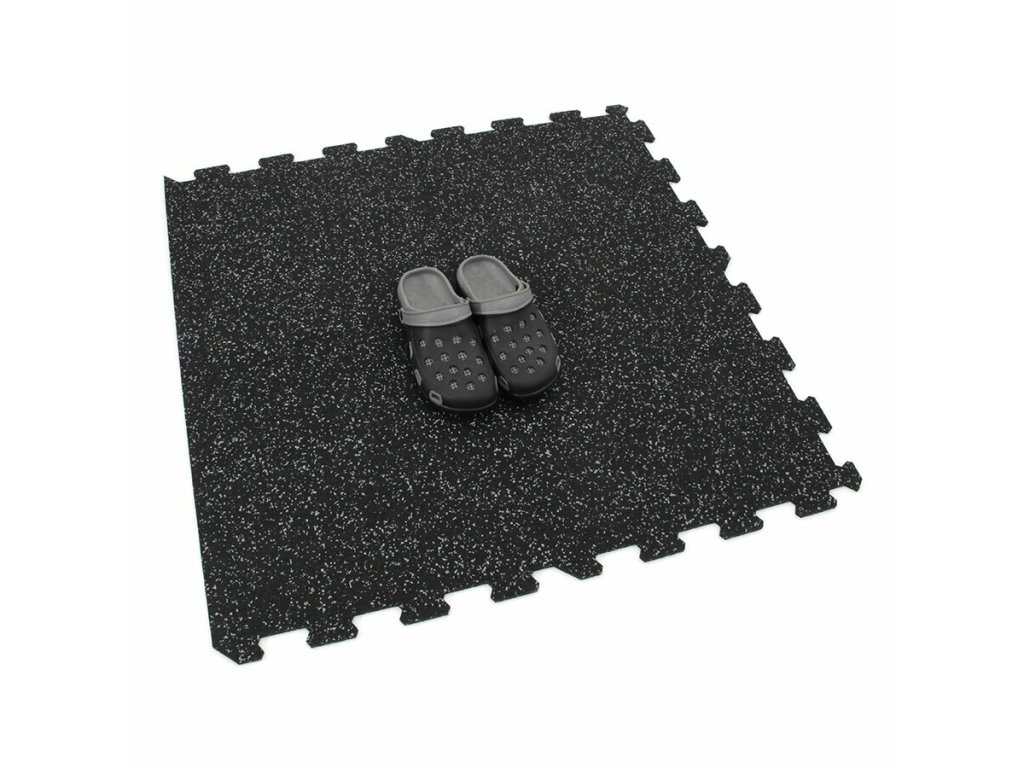 Černo-šedá gumová modulová puzzle dlažba (okraj) FLOMA FitFlo SF1050 - 95,6 x 95,6 x 1,6 cm