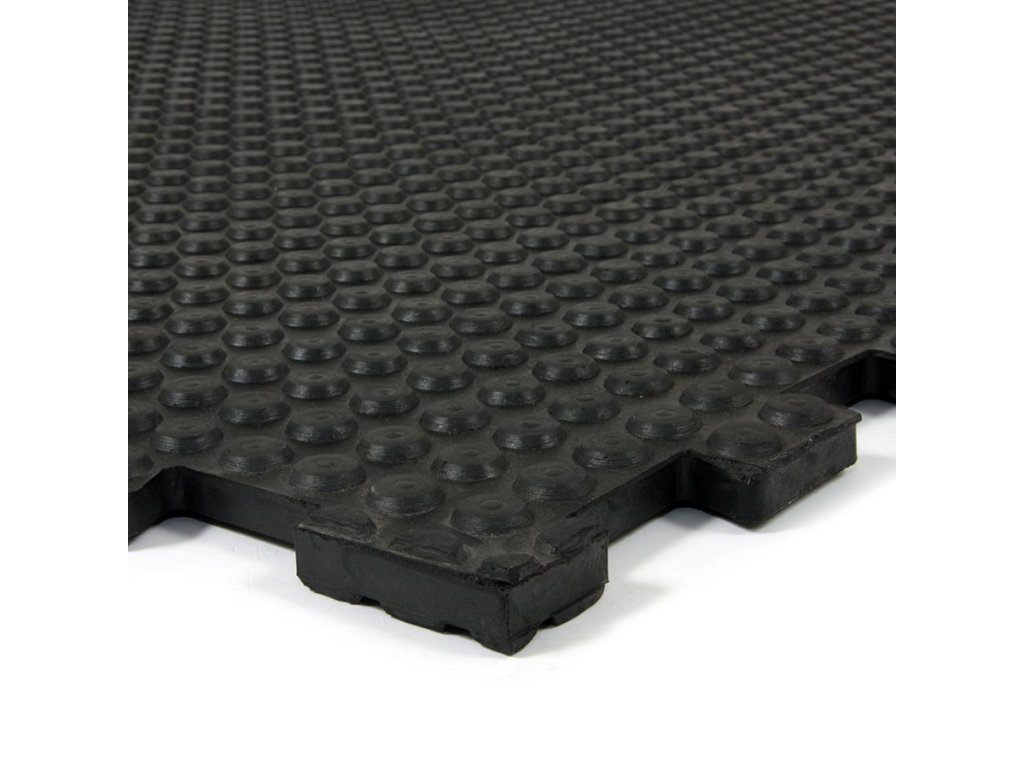 Gumová rohož Heavy Bubble je nejčastěji využívána pro vytvoření podlahy ve stájích, výrobních halách, fitness centrech.
