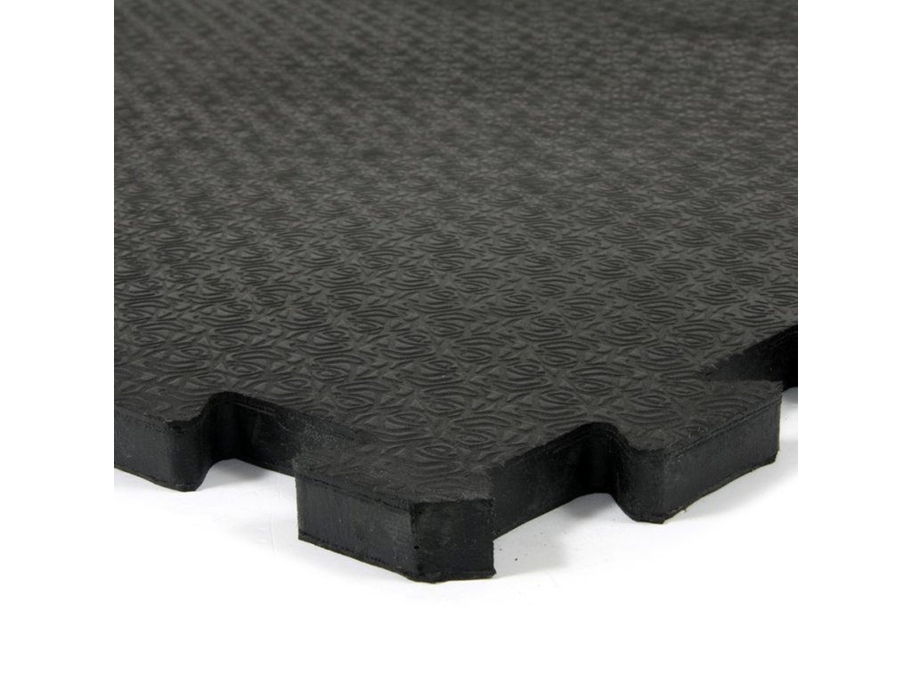 Vytvoření gumové podlahy je velmi jednoduché. Rohože jednoduše položíte a navzájem spojíte puzzle zámky. Na konci podlahy se rohož seřízne, čímž vznikne rovný okraj.