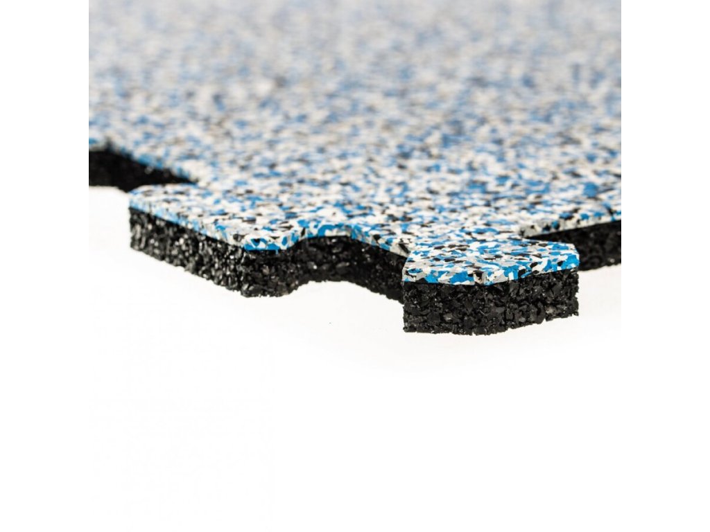 - výška: 2,5 cm (0,3 cm horní vrstvy je EPDM MIX bílá + šedá + černá + 30 % modrá a 2,2 cm SBR černé spodní vrstvy)