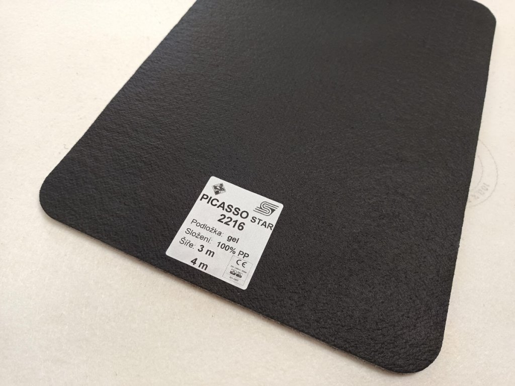 Pokud hledáte levný vpichovaný koberec na protiskluzné, voděodolné podložce, nabízíme na skladě model Picasso Star. Je vyráběn vpichováním tisíců jehliček do několikrát složené polypropylenové cupaniny (nové i z recyklátu) a spodní strana je pokryta protiskluznou gelovou vrstvou na bázi syntetického latexu. Picasso Star se běžně používá v různých komerčních a průmyslových prostorách, přestože nemá speciální atesty.