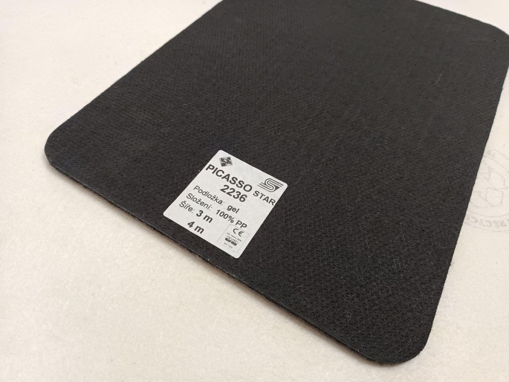 Pokud hledáte levný vpichovaný koberec na protiskluzné, voděodolné podložce, nabízíme na skladě model Picasso Star. Je vyráběn vpichováním tisíců jehliček do několikrát složené polypropylenové cupaniny (nové i z recyklátu) a spodní strana je pokryta protiskluznou gelovou vrstvou na bázi syntetického latexu. Picasso Star se běžně používá v různých komerčních a průmyslových prostorách, přestože nemá speciální atesty.