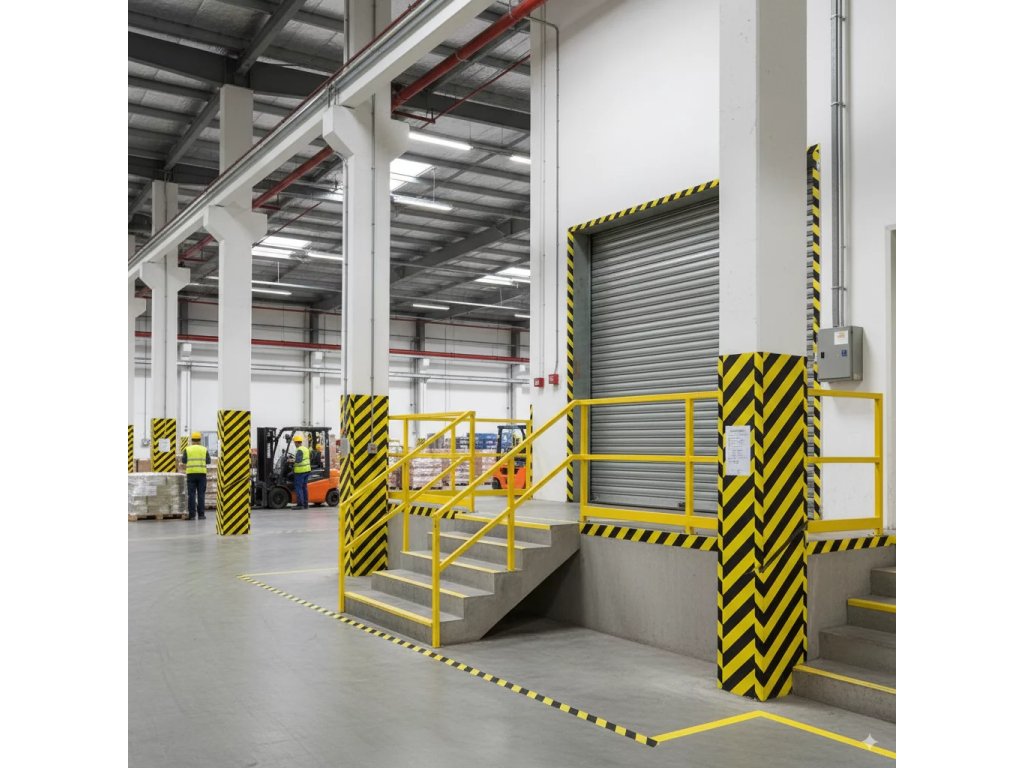 - zvýraznění sloupů, vrat, schodů a stěn ve skladech a halách