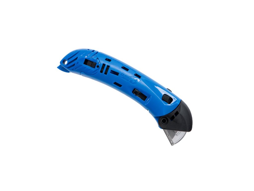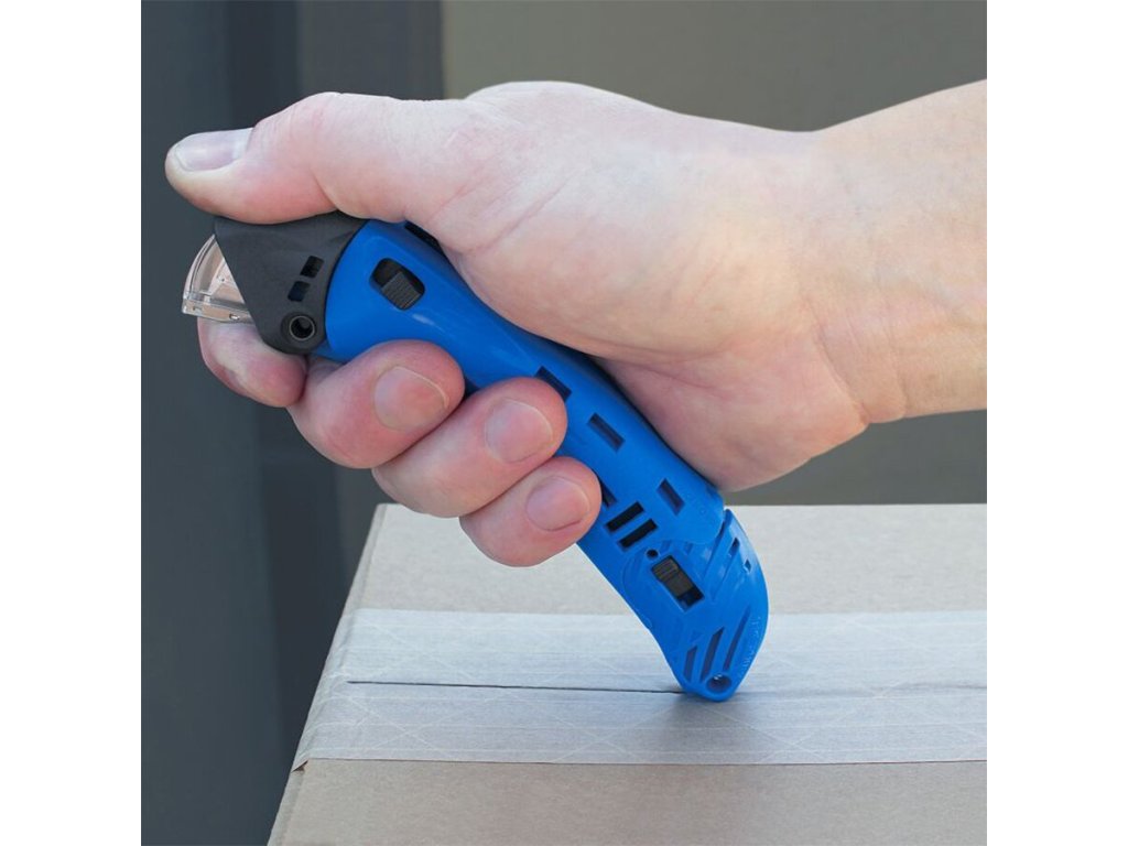 Bezpečnostní nůž s automatickým zamykáním je vybavena jedinečným samočinným bezpečnostním krytem navrženým tak, aby udržoval uživatele v bezpečí. Průhledný kryt automaticky zakryje čepel na konci každého řezu, čímž prakticky eliminuje zranění. Obouruční ochranné kryty pro větší bezpečnost a efektivitu. Navíc použití beznožového rozřezavače pásky také snižuje zranění.