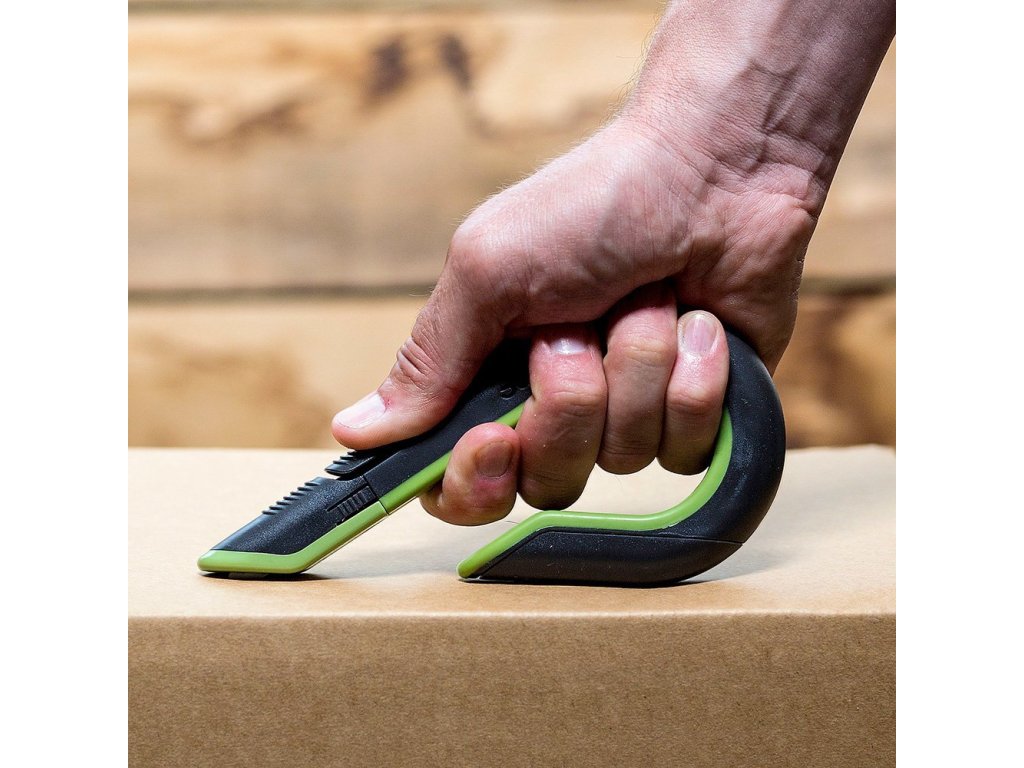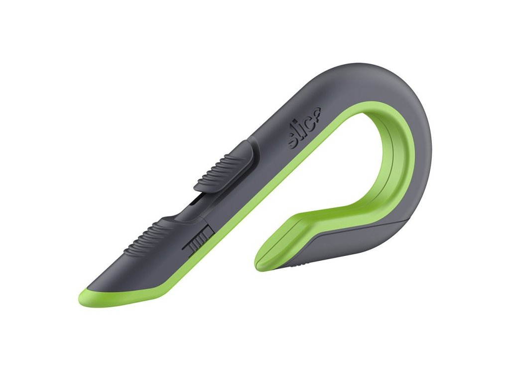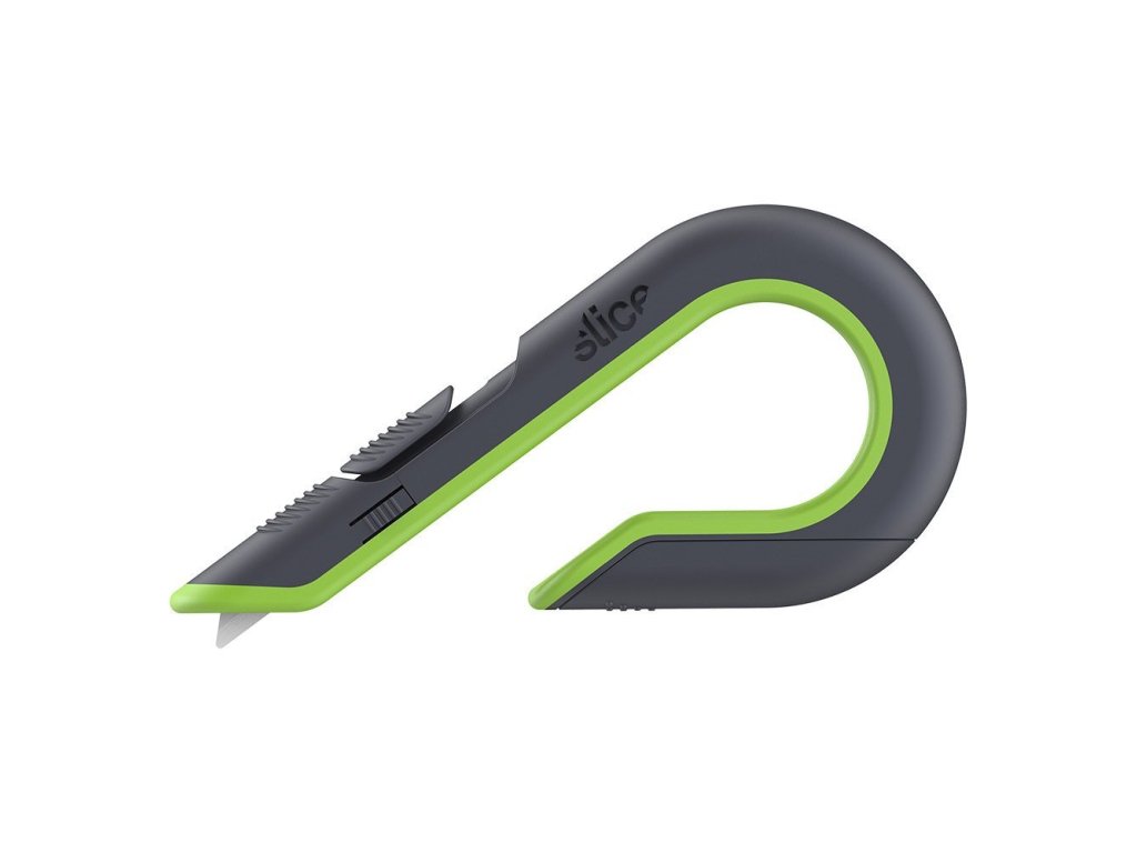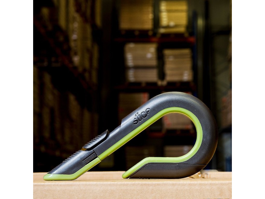 Černo-zelený plastový samozatahovací nůž na krabice SLICE - délka 17 cm, šířka 8,6 cm, výška 1,8 cm