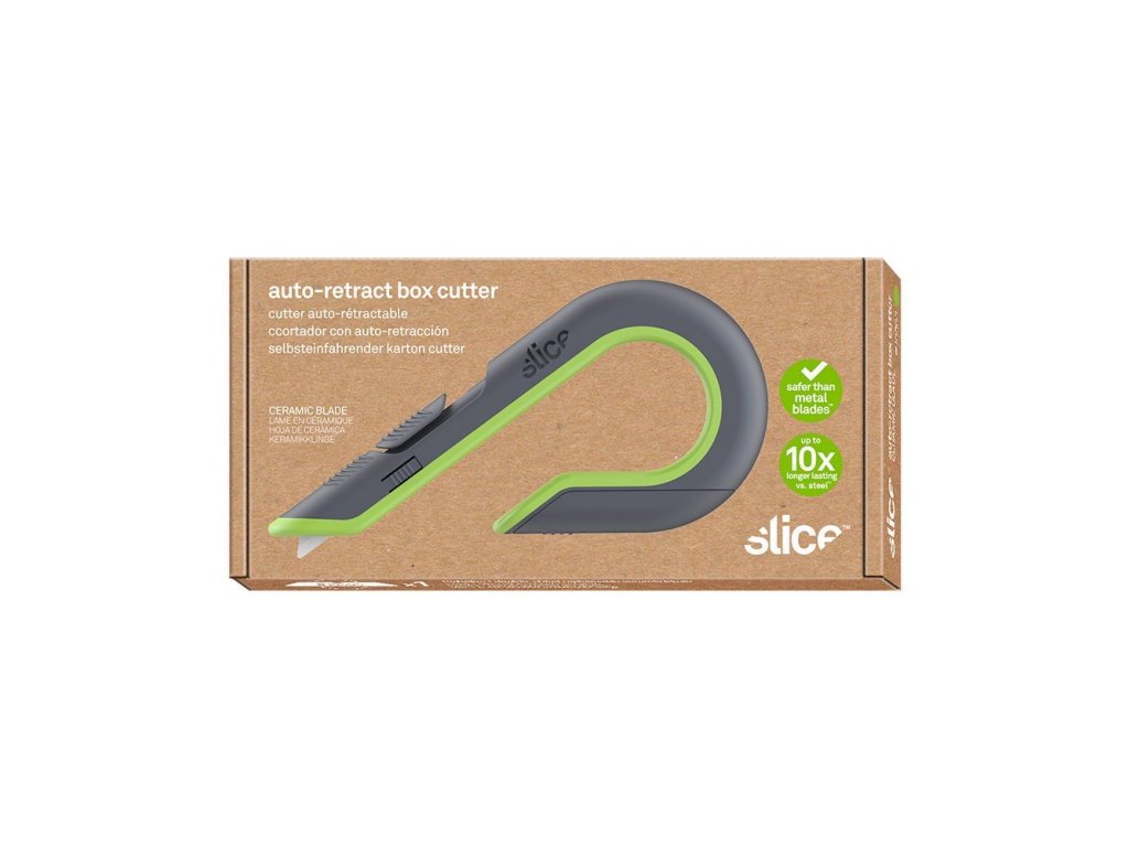 Samozatahovací nůž na krabice Slice 10503 zajišťuje bezpečnost na nové úrovni s ergonomickou, ochrannou rukojetí J-hook a patentovanými keramickými bezpečnostními čepelemi. Vyhněte se zraněním se zasouvacím mechanismem, který zabraňuje nechtěnému pořezání. Vhodné pro jednovrstvé a dvouvrstvé vlnité lepenky.
