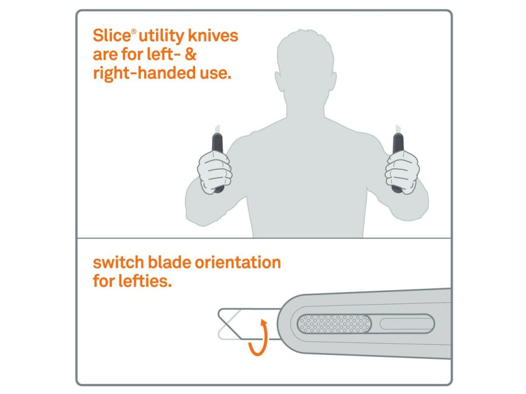 Hlavní rozdíl mezi klasickými ocelovými nebo keramickými čepelemi jiných nožů proti noži Slice je v tloušťce a dvojitém broušení! Díky úhlu zkosení mikro čepele dochází k rozložení tlaku při řezání a účinně brání hlubokým řezným ranám. Nůž je opatřen odolnou, nylonovou rukojetí s výměnitelnou čepelí.