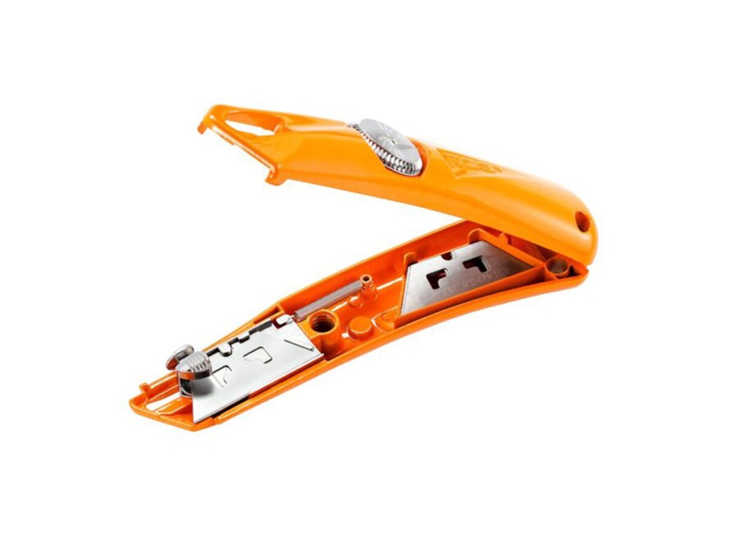 Kompaktní bezpečnostní nůž kombinuje odolnost průmyslového nože s bezpečnostními výhodami samo-zatahovacího nože. Aby se předešlo bolestivým a nákladným zraněním, čepel se po dokončení řezu vrátí zpět. S menší hloubkou čepele je menší pravděpodobnost poškození obsahu krabic. Jedinečný design integrovaného pantu a snadno otevíratelný kryt umožňují pohodlnou výměnu čepele bez použití nářadí. Navíc je ocelová konstrukce extrémně odolná.