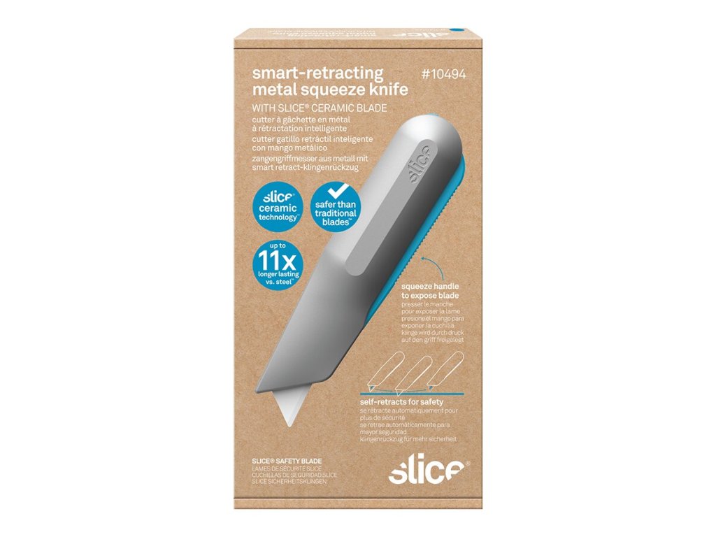 Samo-zatahovací univerzální nůž s páčkou SMART METAL SQUEEZE TRIGGER je inovativní nůž navržený pro snadné a bezpečné řezání různých materiálů, jako jsou například kartony, folie, pásky nebo igelit. Nůž je vybaven speciálním mechanismem, který umožňuje samotahování čepele zpět do těla nože po uvolnění řezacího tlaku, což minimalizuje riziko úrazu a zlepšuje bezpečnost při používání nože.