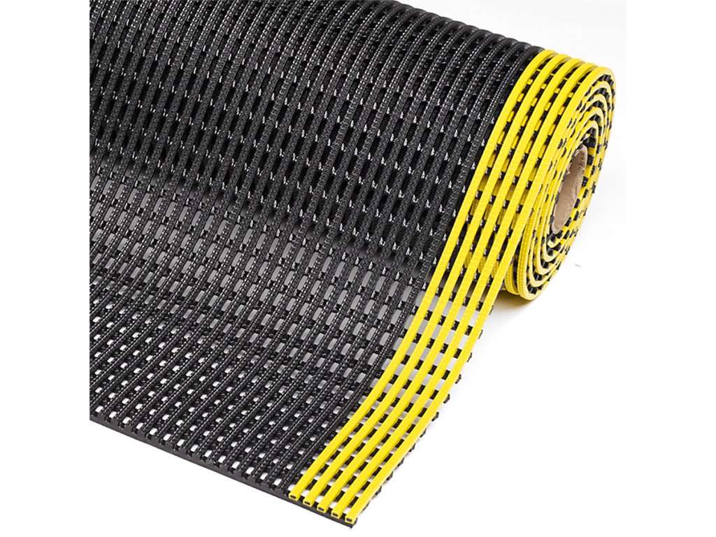 Černo-žlutá protiskluzová průmyslová olejivzdorná rohož Flexdek - 10 m x 91 cm x 1,2 cm