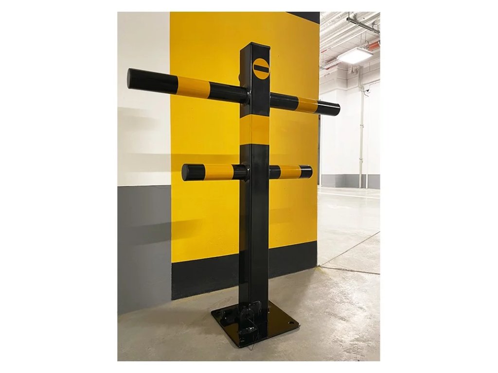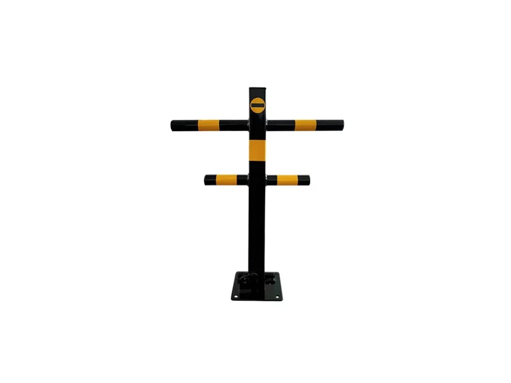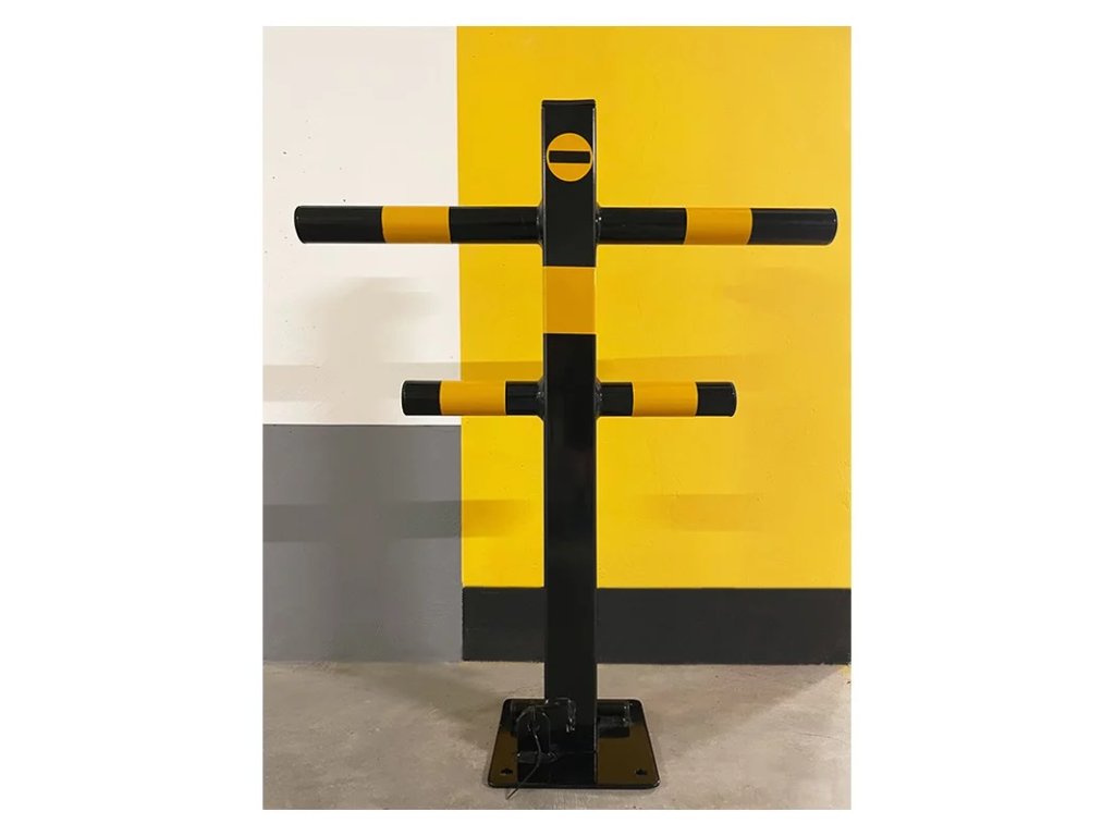 Černo-žlutý ocelový parkovací sloupek je vyrobena z kvalitní oceli a opatřena žlutými reflexními pásy pro zvýšenou viditelnost. Povrch je práškově lakovaný v černé barvě, která kontrastuje s reflexními prvky. Zábrana je sklopná a uzavíratelná na visací zámek (není součástí balení).