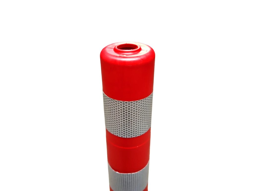 Tento robustní bezpečnostní prvek je vyroben z kvalitního polyethylenu (PE), který mu dodává vysokou elasticitu a schopnost odolat nárazům i oděru bez trvalé deformace. Klíčovou předností jsou vysoce účinné mikroprizmatické reflexní pásy. Tyto pásy využívají technologii zpětného odrazu světla ke zdroji, což zajišťuje špičkovou viditelnost v noci, v mlze či dešti a výrazně snižuje riziko kolize i za těch nejhorších světelných podmínek.