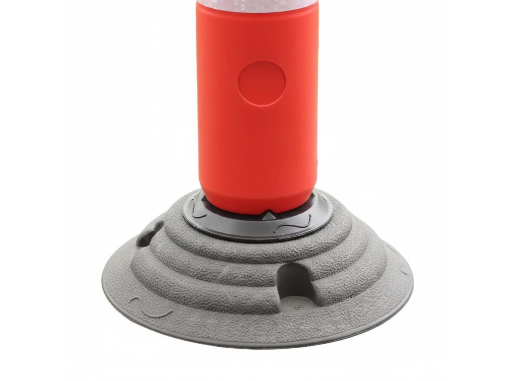 Tento bezpečnostní prvek je vyroben z kvalitního polyethylenu (PE), který mu dodává vysokou odolnost vůči povětrnostním vlivům a mechanickému namáhání bez rizika koroze. Klíčovou předností je extra široký reflexní pruh o šířce 300 mm, který efektivně odráží světlo zpět ke zdroji. Tato technologie zajišťuje vynikající viditelnost v noci, v mlze či dešti a výrazně snižuje riziko kolize i za těch nejhorších světelných podmínek. Díky kombinaci lehkého těla a těžké základny o hmotnosti 2,5 kg je zajištěna vysoká stabilita i při výšce 80 cm.