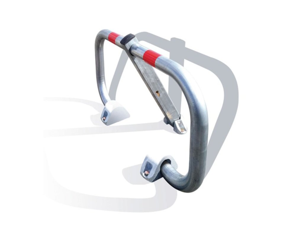 Stříbrná parkovací zábrana s červenými reflexními pruhy, vyrobená z vysoce kvalitní žárově pozinkované oceli metodou Sendzimira. Vyznačuje se jednoduchou formou. Zábrana má svislý sloupek obdélníkového průřezu a profilované, klenuté břevno. Čtyřhranný sloupek byl uzavřen plastovou krytkou proti hromadění vody uvnitř zábrany (ochrana proti korozi). Umožňuje zabezpečit parkoviště proti odstavení nežádoucích vozidel. Zabraňuje také přístupu na soukromý pozemek a pěšiny sloužící jako požární cesty. Zábranu je možno zamknout pomocí Cylindrického zámku (součástí dodávky).