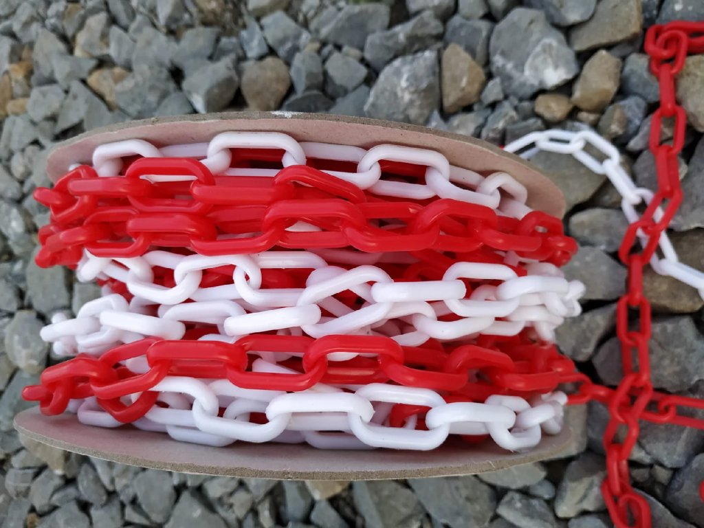 Bílo-červený plastový označovací řetěz (role) - 0,6 cm x 25 m