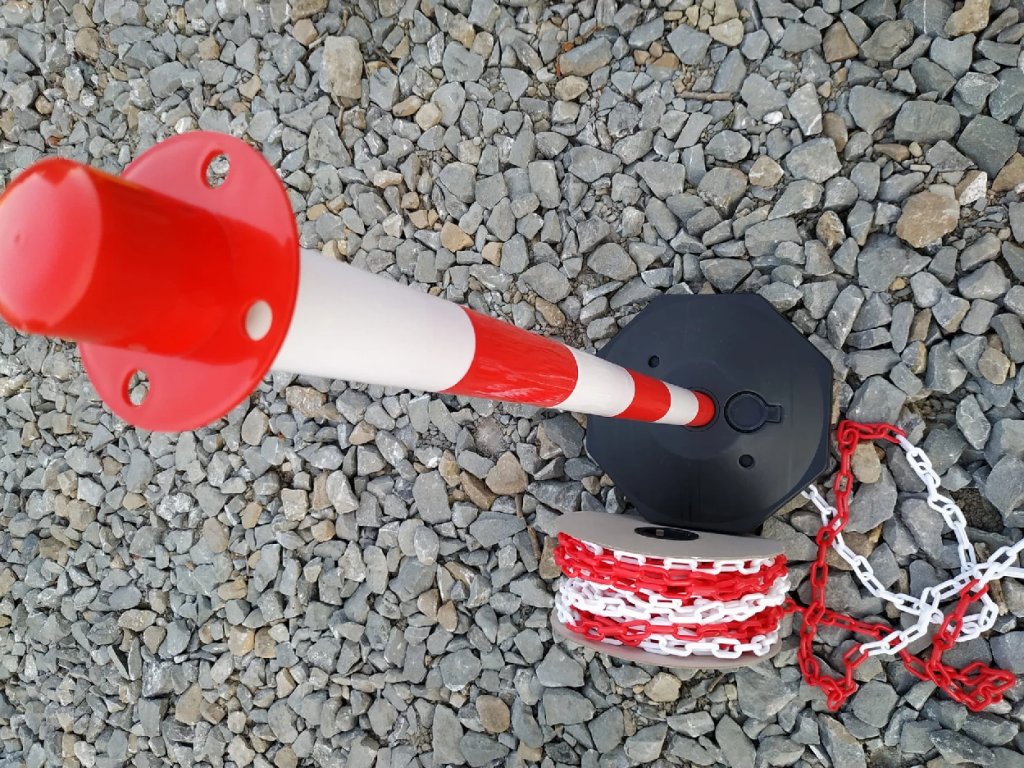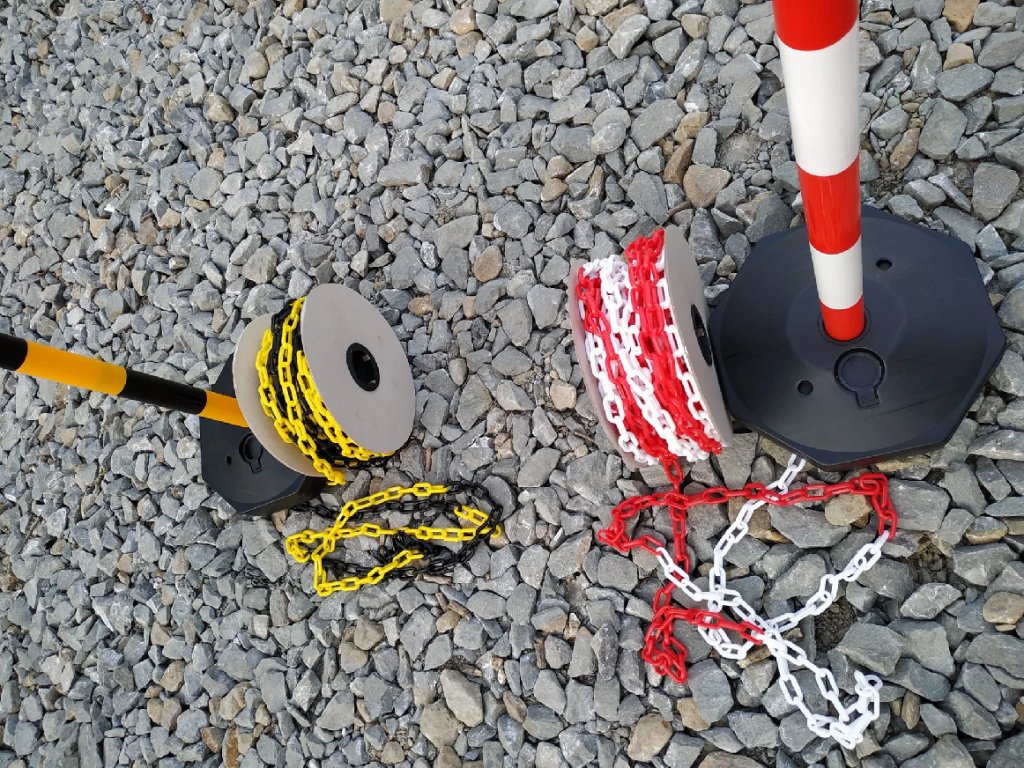 Bílo-červený plastový vymezovací řetěz ve formě role o délce 25 metrů je ideální pro rychlé a efektivní označení nebo ohraničení prostor ve vnitřních i venkovních podmínkách. Řetěz se používá v kombinaci s plastovými vymezovacími sloupky, dopravními kužely nebo stojany a slouží k vizuálnímu oddělení dopravních cest, výkopů, stavebních míst nebo parkovacích zón. Díky střídání kontrastních barev po 50 cm (černá/žlutá) zajišťuje řetěz výbornou viditelnost i za zhoršených světelných podmínek.