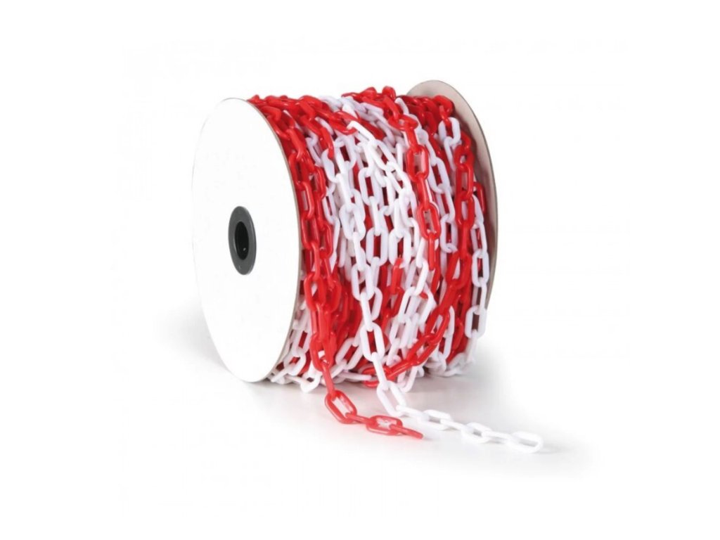 Plastový červeno-bílý řetěz je určen k efektivnímu vymezení a ohraničení prostor ve vnitřním i venkovním prostředí. Slouží jako elegantní a trvanlivá alternativa ke klasické šrafované pásce. Díky svému výraznému zbarvení zajišťuje dobrou viditelnost a přehledné vymezení prostoru. Lze jej snadno uchytit pomocí plastových spojek typu „S“.
