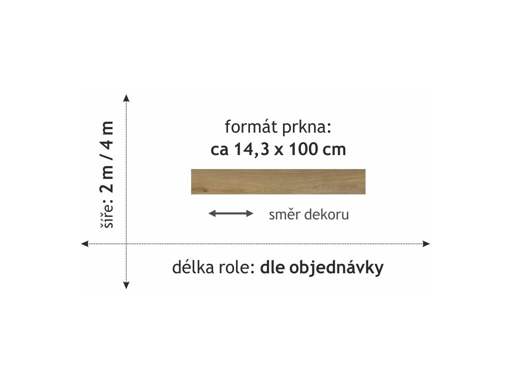 Vyberte požadovanou šíři. Do košíku vkládejte celkové množství v metrech čtverečních. Například při vybrané šíři 4 m a požadované délce 5 m, vložíme do košíku 20 m2.