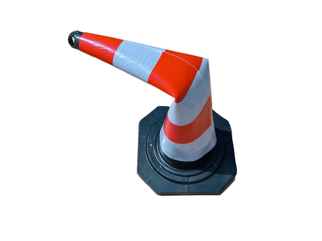 Dopravní reflexní kužel je vyroben z vysoce kvalitní elastické pryže, která zajišťuje jeho dlouhou životnost a výjimečnou odolnost vůči povětrnostním vlivům. Díky pružnému materiálu se kužel při přejetí vozidlem vychýlí a následně se vrátí do původního tvaru, což minimalizuje riziko jeho poškození.